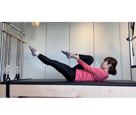 ③脚を自分の方に引き寄せながらお尻を下から持ち上げていきます。鳩尾のあたりまで持ち上がればOK!!