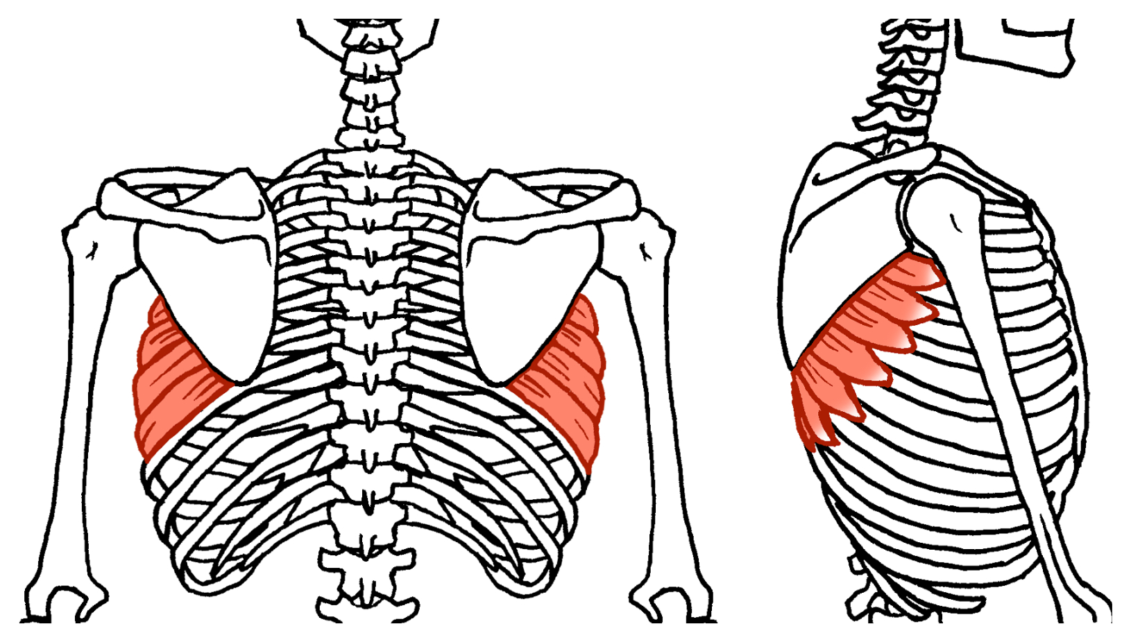 『前鋸筋』とは、下の図の赤いところの筋肉です。
