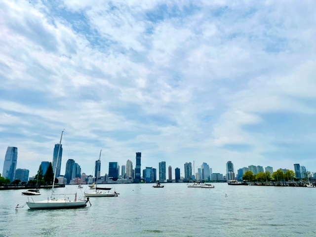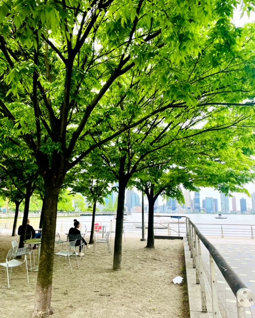 爽やかな風が吹くマンハッタンの川沿いの公園。