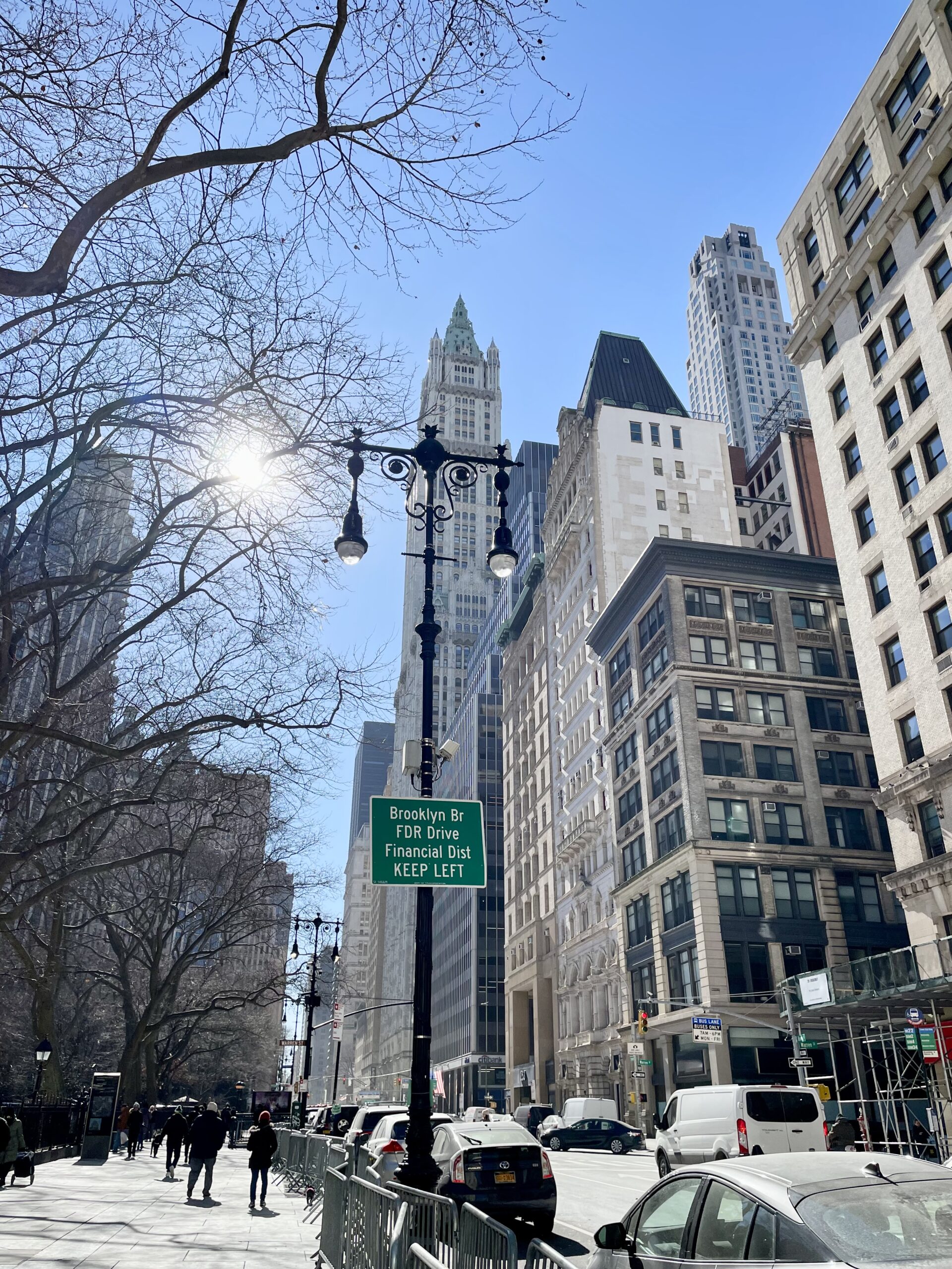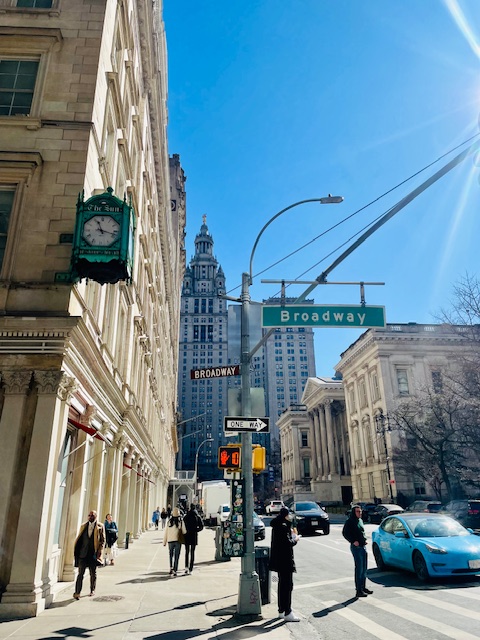 正面に見える高いビルは、世界に誇る大きさのNY市庁舎。