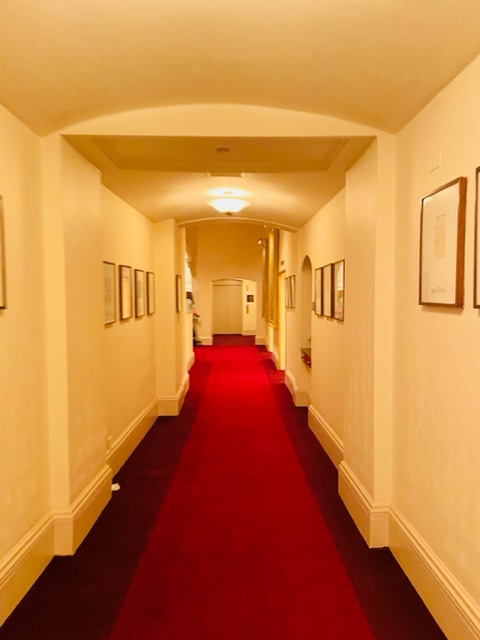 赤いカーペットがゴージャスな雰囲気を醸し出す廊下。
