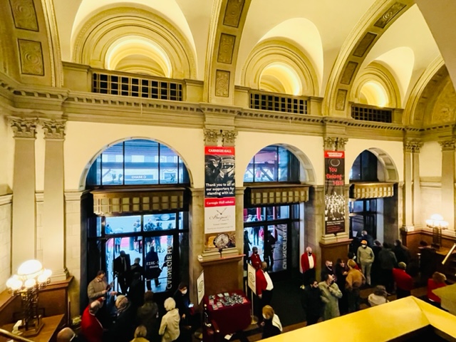カーネギーホールでは、ワクチン接種証明は求められませんでしたが、観客はマスク着用必須でした。