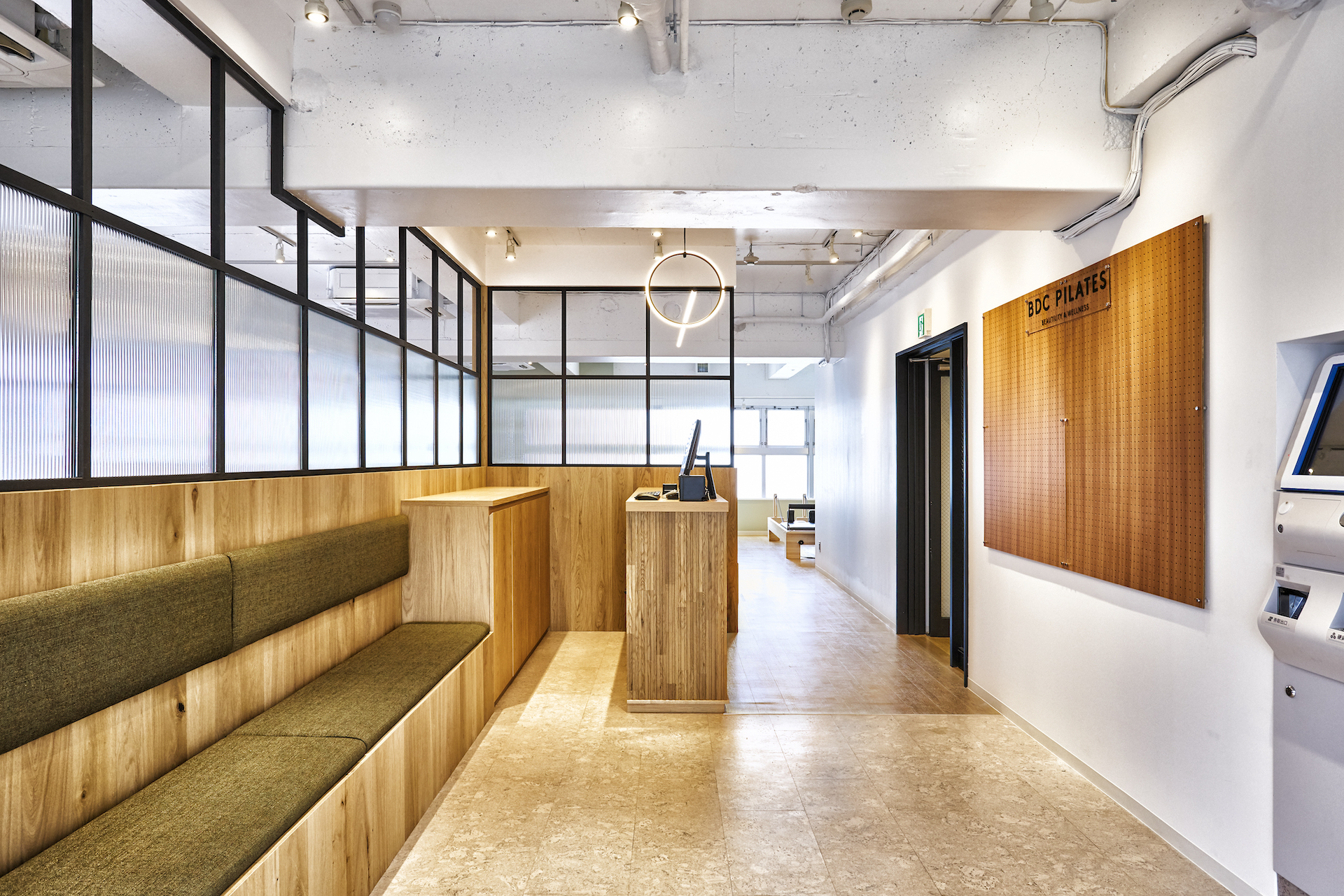 入口には布製の長椅子があり、レッスン前はこちらでくつろいでお待ちいただけます♪