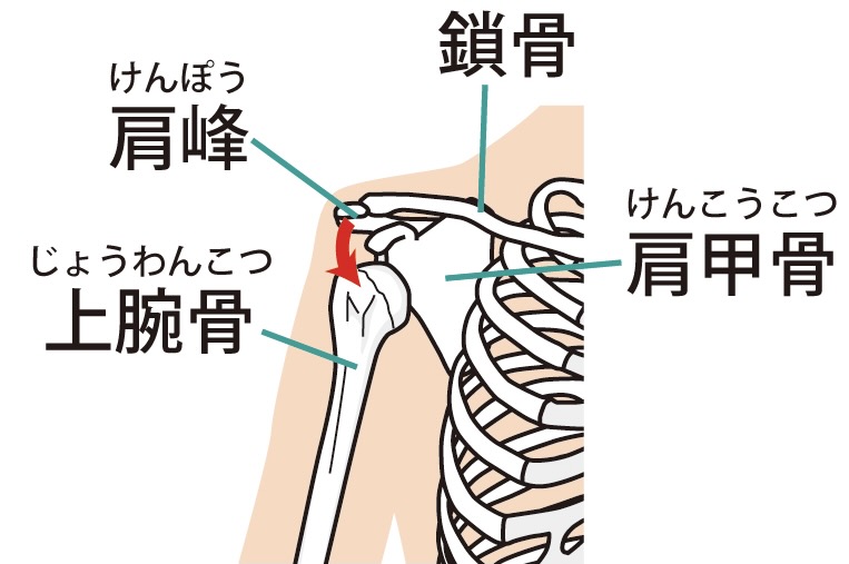 肩というのは実は一つの骨ではなく、以下の図のように、上腕骨(じょうわんこつ)と肩甲骨(けんこうこつ)と鎖骨(さこつ)の3つの骨から構成されています。