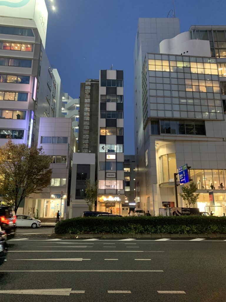 こちらは夜の感じ。青山通りの反対側からスパイラルビル方面を見ると、左手にA Studioが。
