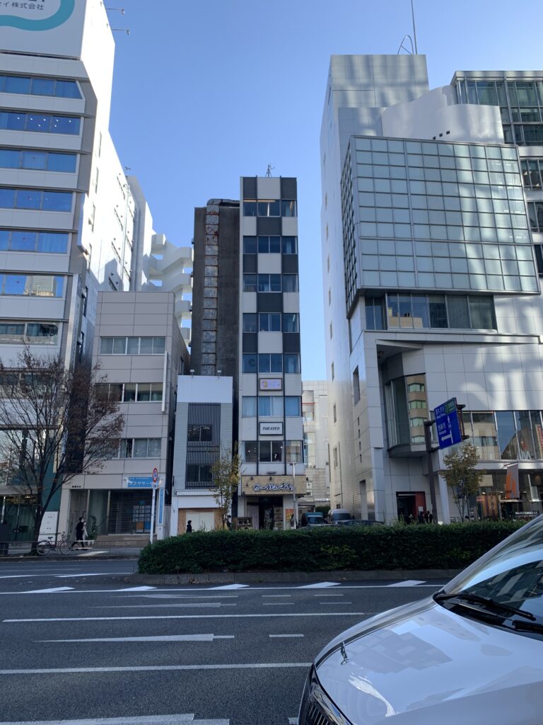 建物の右横にある小さな自動ドアから入り、5階へ行きエレベーターが開くと右手に入口があります。