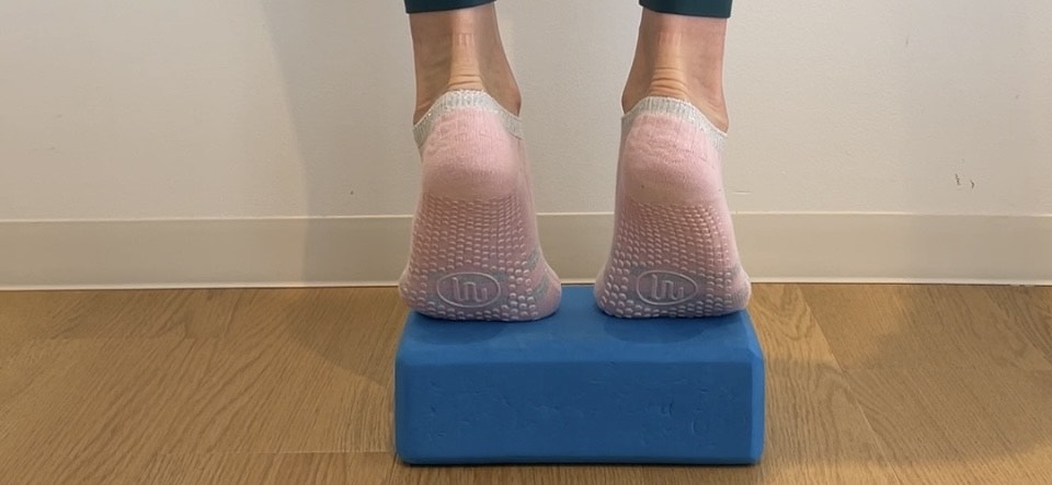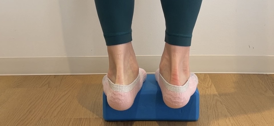 床の上でやる場合は、かかとを下ろしすぎず、気持ちいいなと思うところまでで止めて、繰り返し上げ下げをしていきましょう。