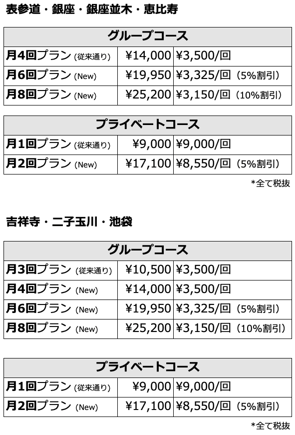 * コース変更をご希望の方は、変更希望月の前月20日までにスタジオ受付にてお手続きください。